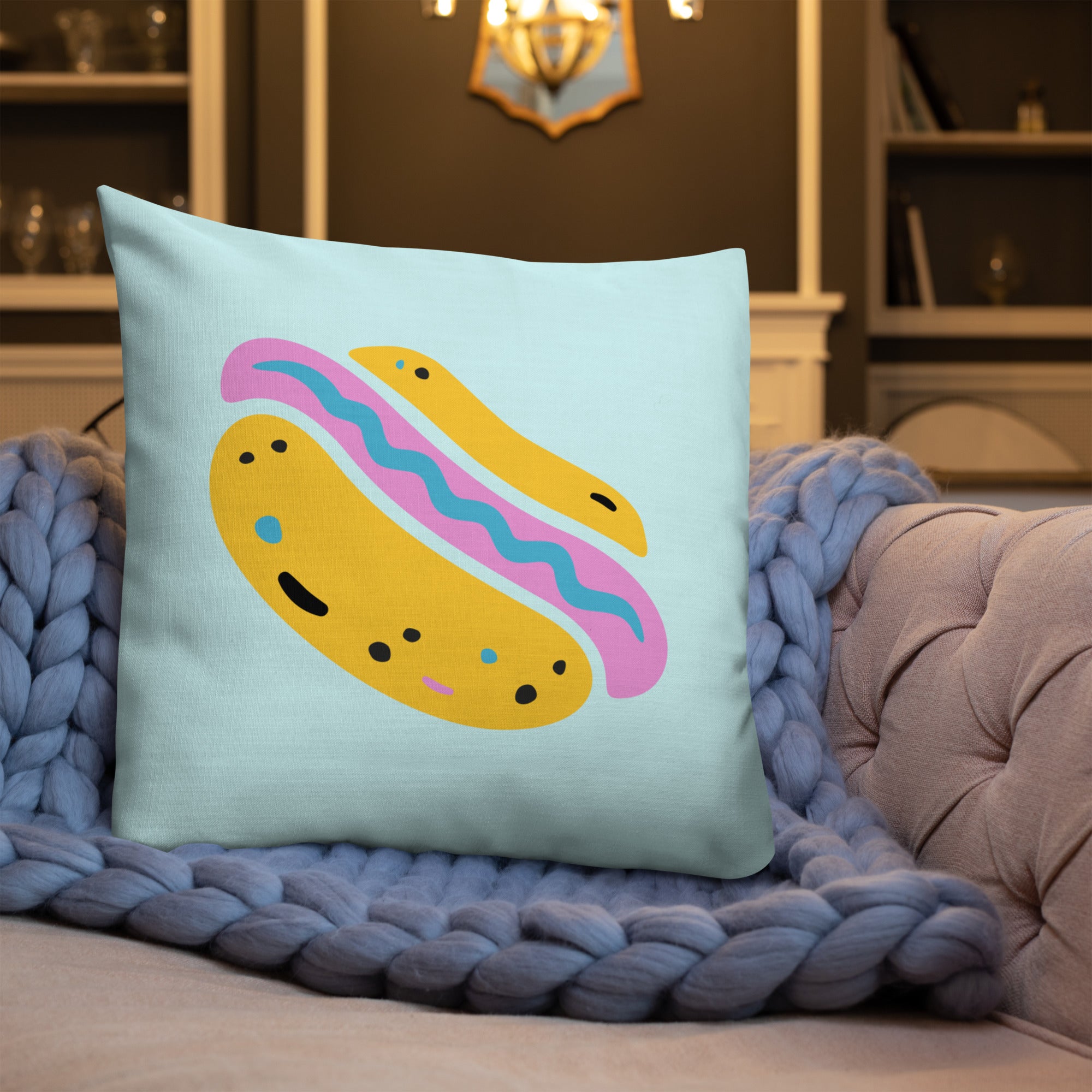 Hot Diggity Dog Decorative Pillow - 18″×18″ is backordered and will ship as soon as it is back in stock.